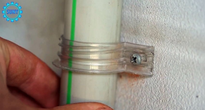Полученный в результате хомут может применяться для крепления труб и гофры к стенам.