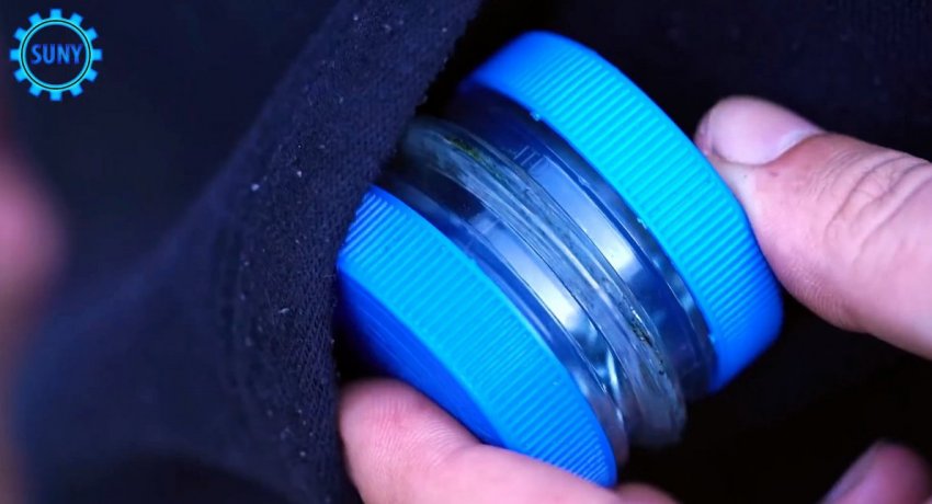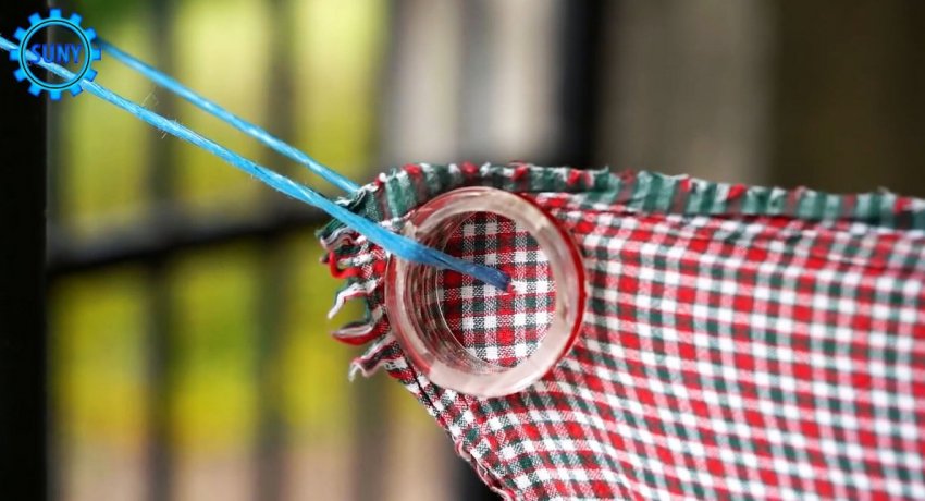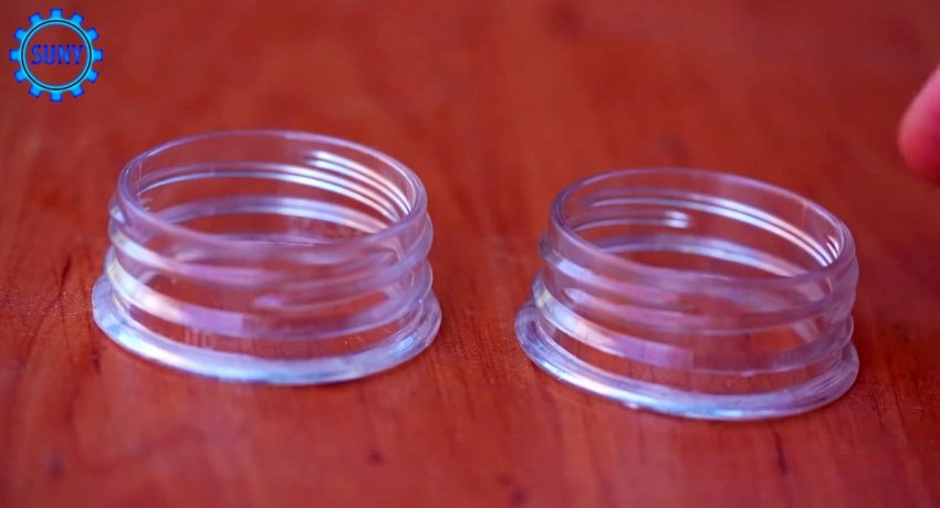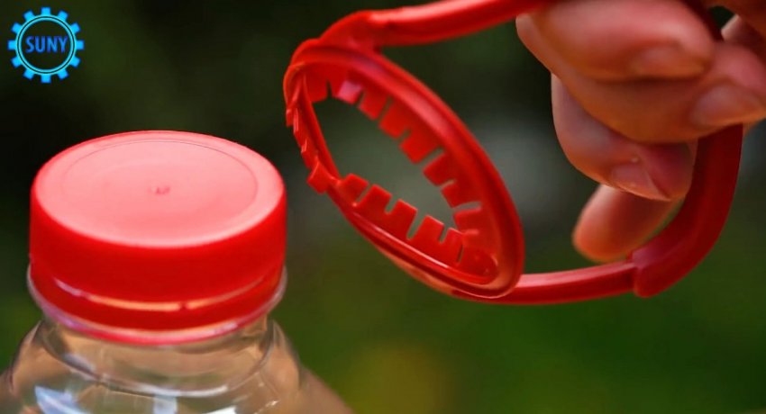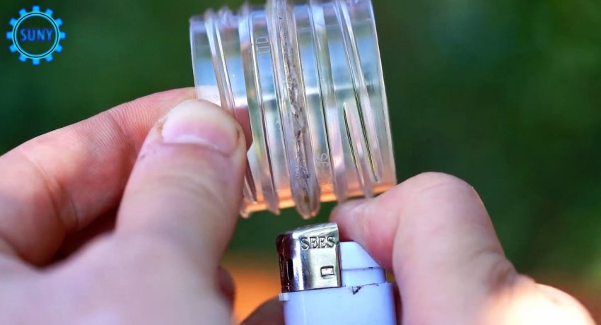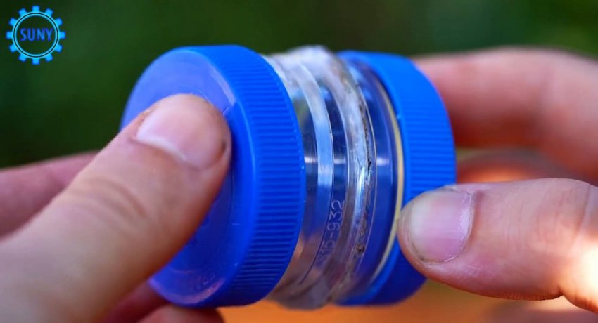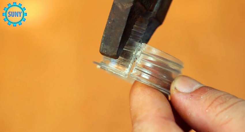 От бутыли отпиливается резьба. Ее нужно разрезать поперек в одном месте, и выгнуть края наружу плоскогубцами.