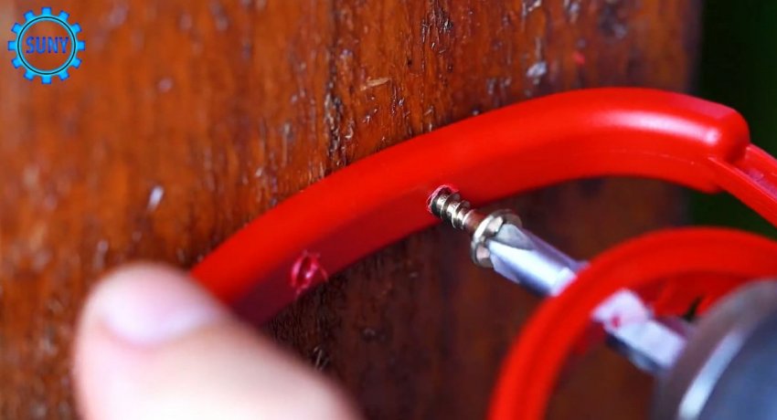 Ее нужно прикрутить к стенду или к стене на 2 самореза.