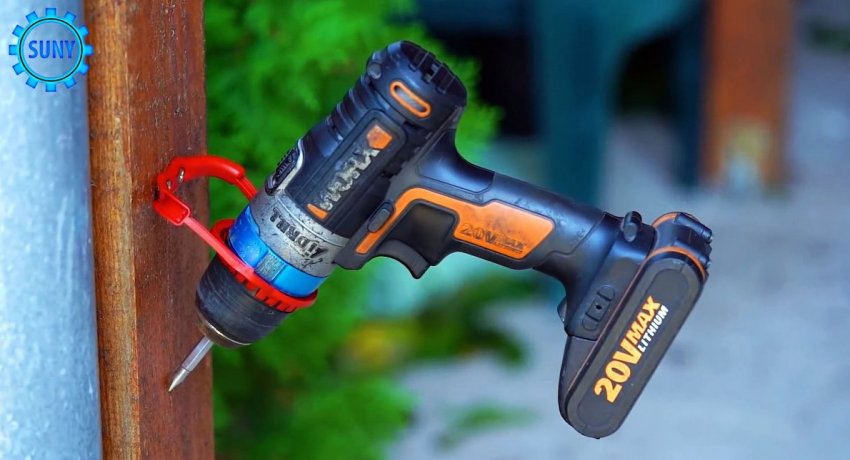 Полученный держатель может использоваться для подвешивания шуруповерта, клеевого пистолета и прочего инструмента.