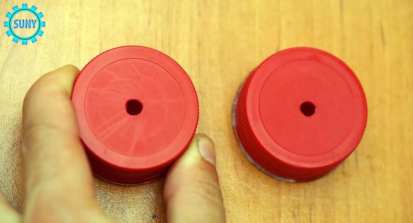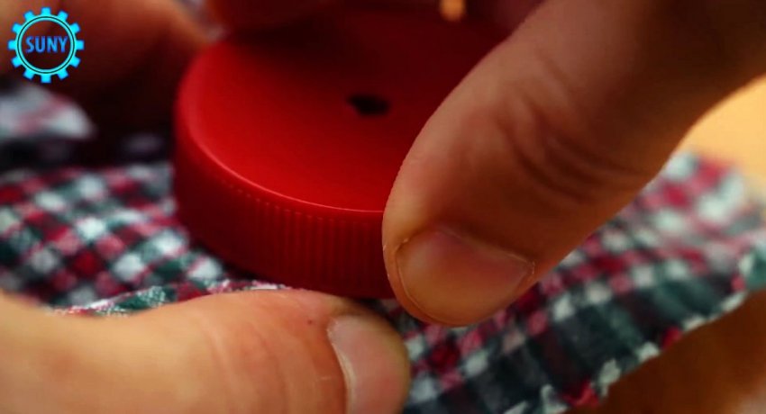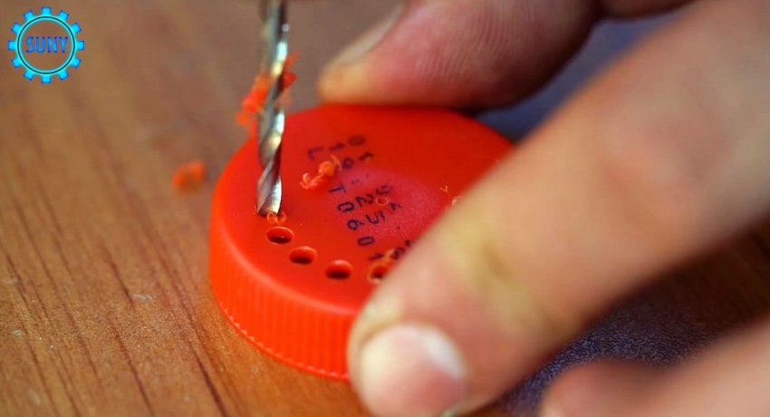Затем в крышке просверливается отверстие.