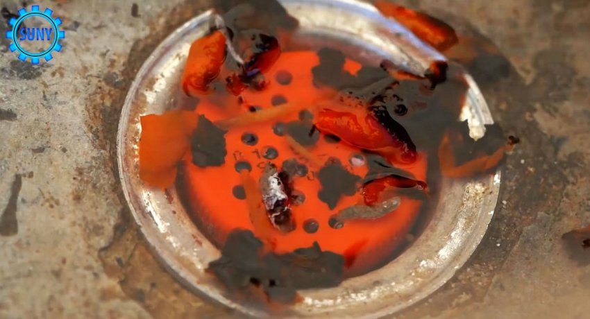 Заготовки стыкуются спилами и спаиваются над пламенем зажигалки.