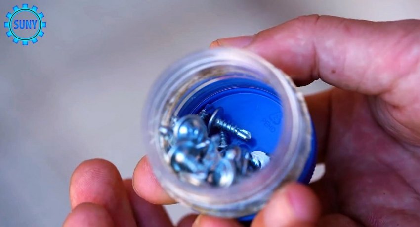 В результате получается контейнер, открываемый с двух сторон. В него можно складываться мелкие саморезы и гвозди.