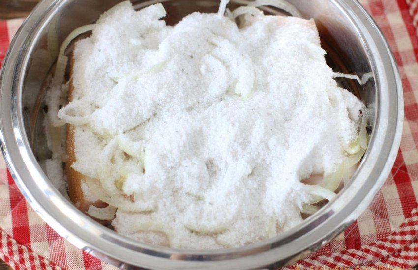 3. Засыпать щедрым слоем соли сверху и между кусков.