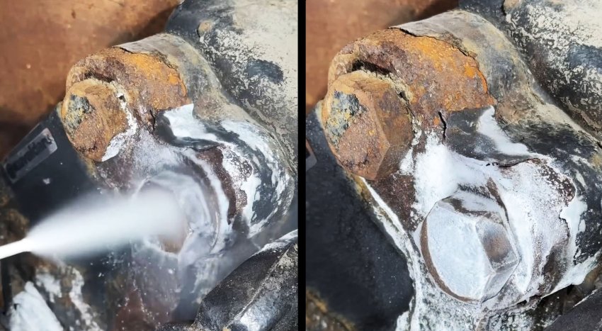 Шляпка болта должна покрыться инеем, свидетельствующим об остывании болта до низких температур.