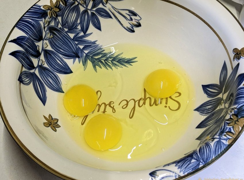 3 яйца взбиваем венчиком, добавляем порциями просеянную муку, разрыхлитель и молоко.