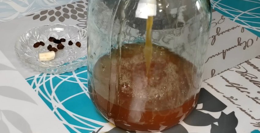 В процеженный квас добавляем 2 столовые ложки натурального меда, тщательно перемешиваем, и пробуем на вкус. Также добавляем в готовый напиток изюм 8-10 штук и небольшой кусочек хрена по вкусу. Его можно натереть на терке или мелко измельчить ножом. Хрен и мед придают квасу ни с чем не сравнимый вкус.