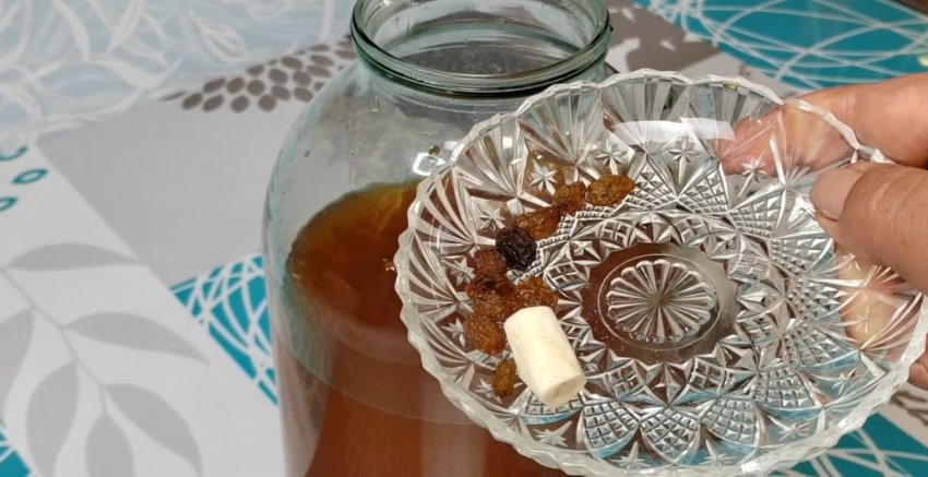 Квас готовим без дрожжей. Вместо них используем примерно по 10 штучек светлого и темного изюма, который не моем, так как на нем присутствует природные дрожжи.