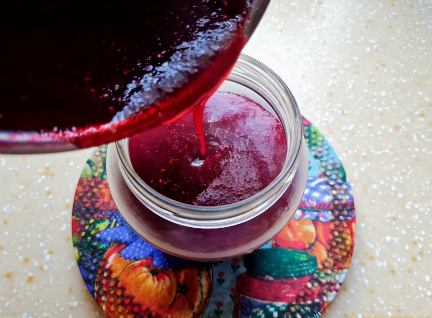 Продолжаю варить еще примерно 15 минут. Выключив плиту, не дожидаясь, чтобы все остыло, переливаю жидкую заготовку в стерильную банку.