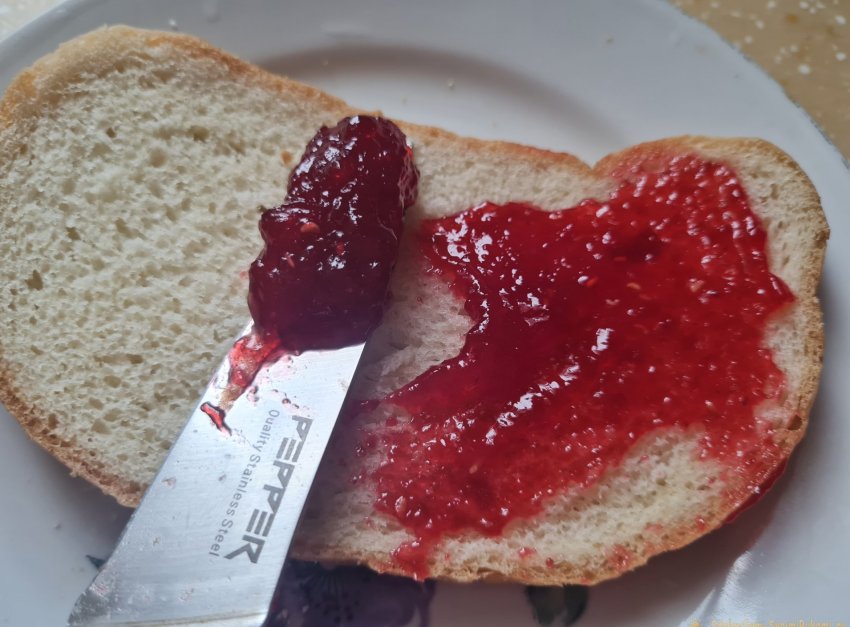 Хочется полакомиться джемом сразу? Просто закрываю емкость крышкой. Готовила вечером. За ночь вкуснятина приобрела желеобразную консистенцию. Во время завтрака, как и пеночка, она пользовалась огромным успехом. Компот оставили на обед.