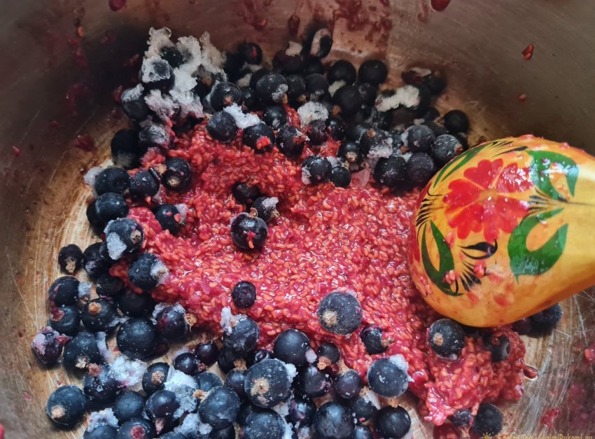 На основе косточек, оставшихся в сите, подсыпав к ним, в частности, черную смородину, сахар, подлив воду, варю компот. Приблизительно полчаса.