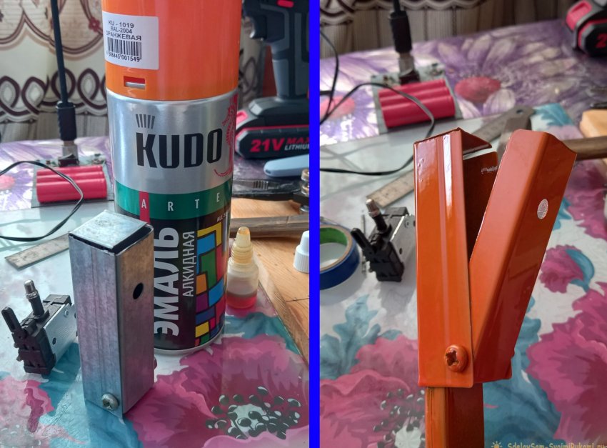 Реверс в данном случае, может, показался бы кому-нибудь и лишним в этом изделии, но раз уж рычажок переключения предусмотрен в конструкции пусковой кнопки – то почему бы и не воспользоваться? И потом, бывают такие моменты, когда во время работы неизбежно летят в лицо и глаза искры и окалины, от обрабатываемой детали. Во тут-то и пригодится реверс. Конечно, есть и более простой вариант сделать похожий ножной выключатель.
