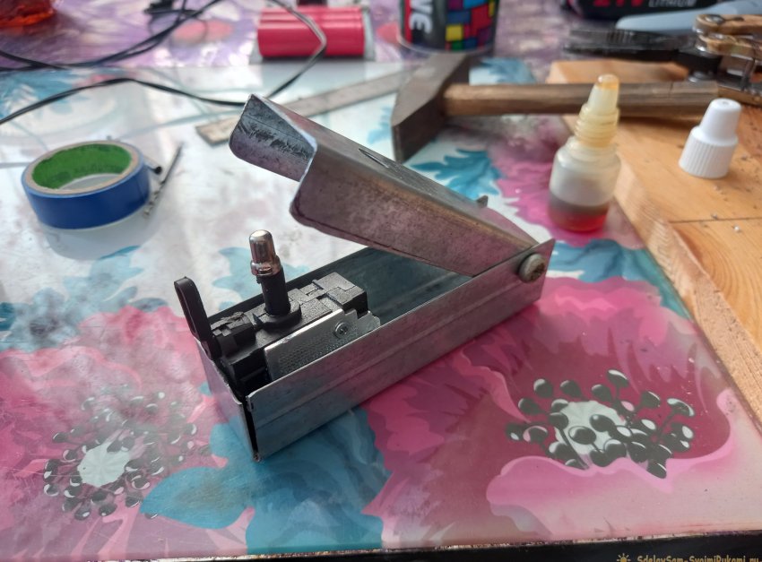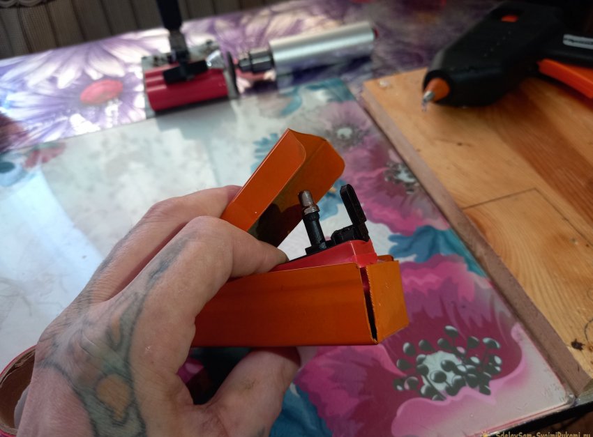 Здесь есть один тонкий момент: выключатель следует закрепить в корпусе под углом, вот так: