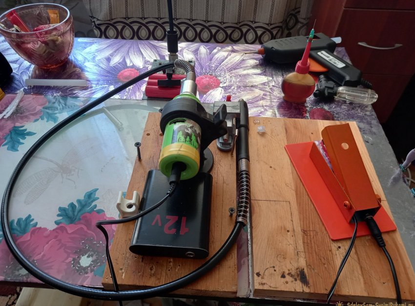 Электрический гравер, купленный в магазине по средней цене, обычно идет со стандартной сборкой и комплектацией; корпус с моторчиком, цанговый или кулачковый зажимной патрон, и сетевой блок питания, соответствующий энергопотреблению моторчика. Регулятор оборотов, встроенный в корпус гравера, конечно, встречается, но стоит такая модель на порядок дороже. К тому же, на мой взгляд, встроенный в корпус регулятор оборотов (как правило, это потенциометр с круглым колесиком), не совсем удобен. Одной рукой Вы держите гравер, другой – обрабатываемую заготовку, приходится положить заготовку, чтобы добавить или убавить обороты, и потом прицеливаться заново. Можно, конечно, изловчиться и повернуть колесико свободным пальцем, но это неудобно и опасно. Дабы избежать этого неудобства, я решил собрать для своих граверов ножной выключатель.