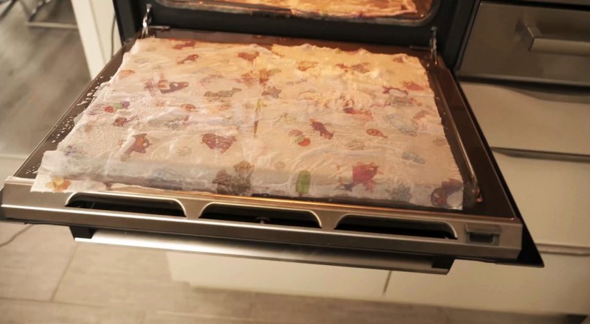 В зависимости от степени загрязнения оставляем все минимум на 30 минут. Если духовка давно не очищалась, можно оставить размокать грязь часа на два, но следует время от времени опять пропитывать полотенца раствором.