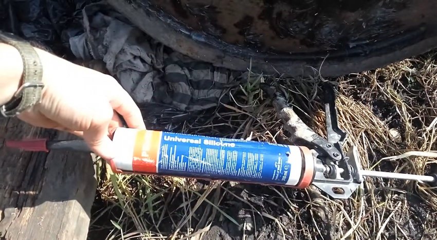 Но выход из тупиковой, казалось бы, ситуации есть. Силиконовый герметик! Он может быть как чёрным, так и прозрачным, разницы нет. Достаточно покрыть средством повреждённый участок бочки, и через некоторое время, необходимое для затвердения герметика, течь будет устранена.