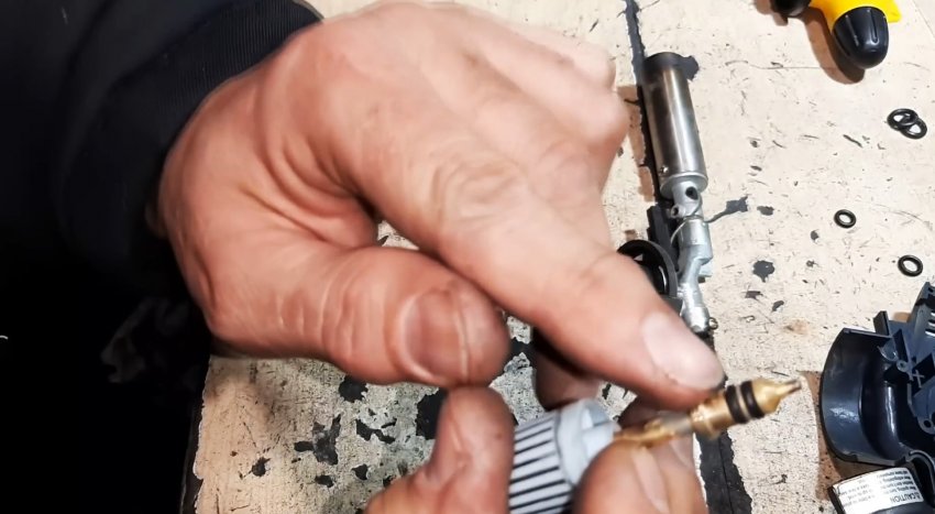 Производим сборку горелки. После проверяем её на герметичность. Утечки нет, а регулировка газа стала более плавной, без рывков.