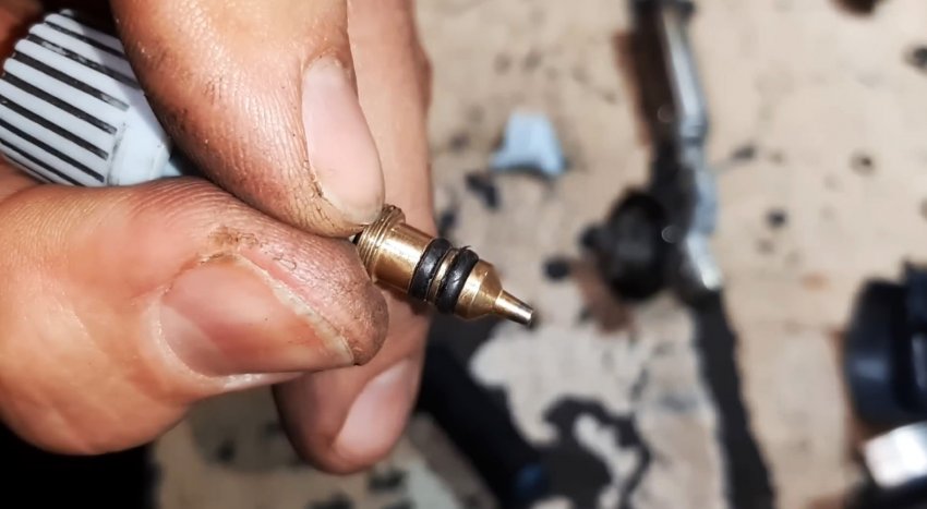 Выкручиваем регулятор и видим на нём два резиновых колечка. Они и есть причина большинства утечек газа.