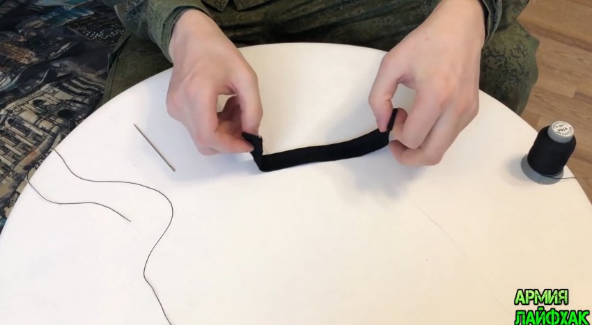Если не пользоваться штрипками, то штанины вылетают из берцев и одежда на бойце выглядит неряшливо. Чтобы исключить это, нужно использовать резинку штрипок или любой другой подходящий кусок резинки. Замеряем обхват ноги на уровне верха берцев и делаем резиновое кольцо несколько больше диаметра ноги.