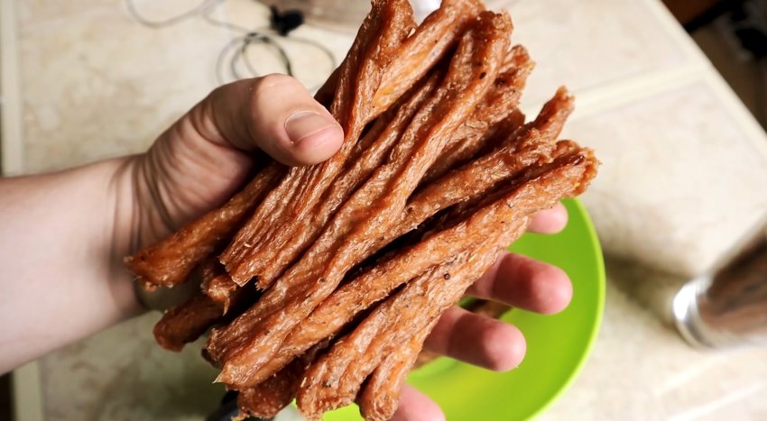 Из 1,5 килограммов свежего мяса получится около 700 граммов колбасок. Потери веса будут значительны, но при таком способе домашняя закуска все равно обойдется дешевле, чем покупная. А если хотите сделать колбаски более острыми, поэкспериментируйте с количеством чеснока, добавьте красный молотый или кайенский перец, острую паприку. А если любите более соленые варианты – соли или посолочной смеси также добавьте побольше. Потрясающая закуска готова, наслаждайтесь!