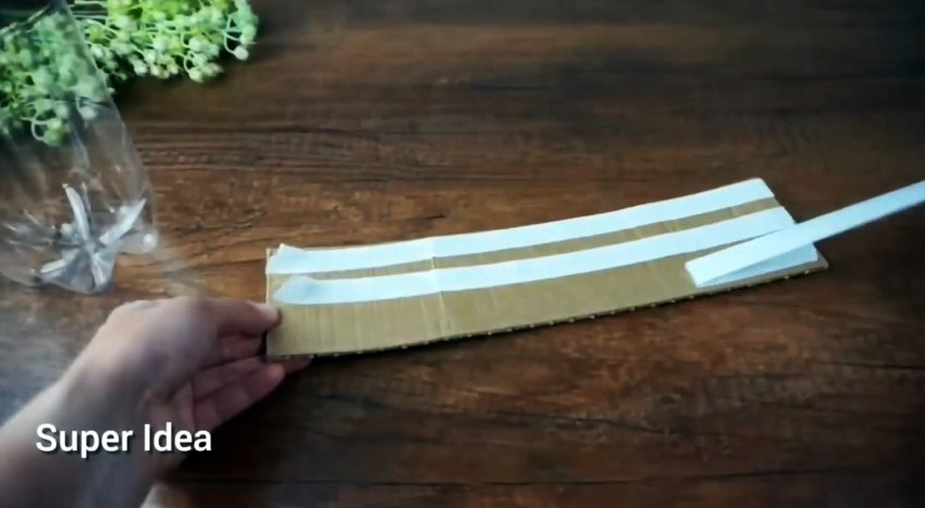 Далее из картона вырезаем прямоугольник, по длине равный периметру нижней части бутылки.