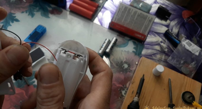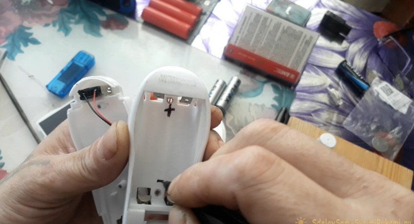 Так же, необходимо пометить плюс и минус внутри блока, ибо элементы питания у нас будут устанавливаться не последовательно, как раньше было в этом блоке, а параллельно. То есть все плюсы с одной стороны, все минусы – с другой.