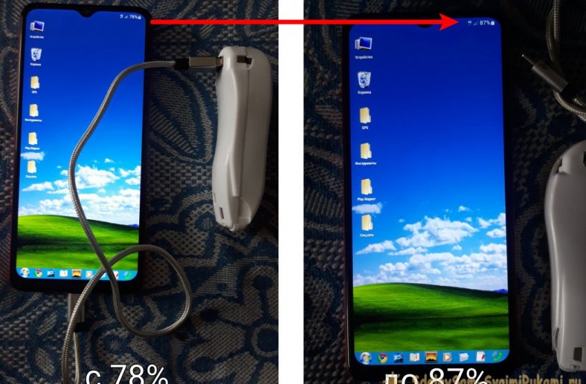 Мой аппарат с аккумулятором в 5000 mAh, собранная мной зарядка зарядила ровно на 10%.