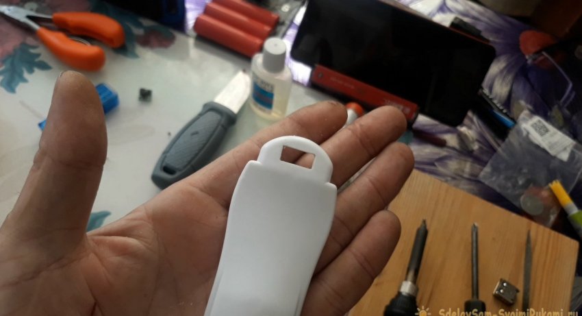 Далее, нужно вырезать в корпусе прямоугольное отверстие для разъёма USB.