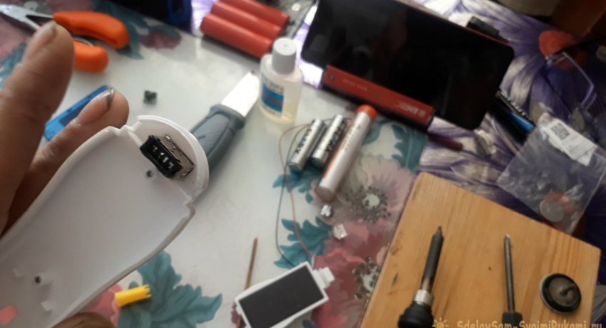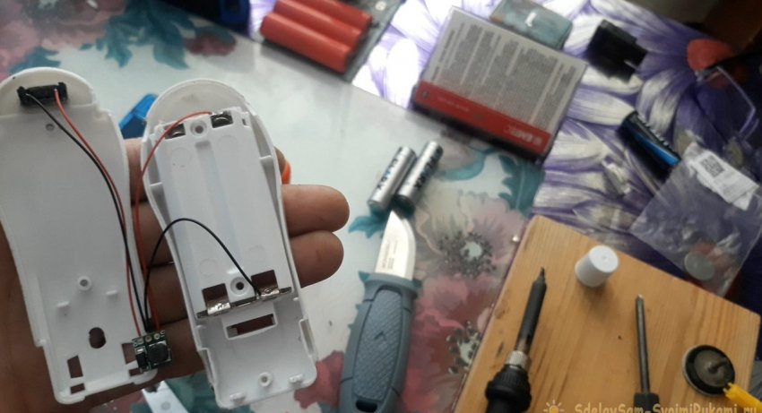 Всё очень просто, вся работа заняла минут 20. Сначала, естественно, необходимо подобрать нужный корпус, блок для батареек. Я взял двойной, от сломанной машинки для спаивания пакетов.