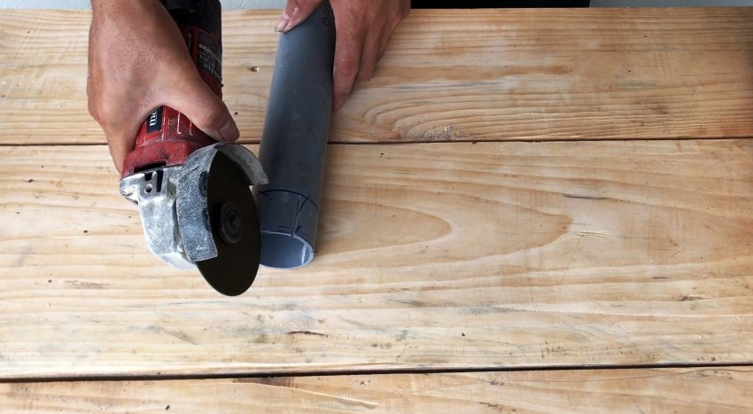 Болгаркой выполняем систему прорезей от торцов труб до нанесенных поперечных колец. По кольцам болгаркой выполняем по кругу небольшие углубления.
