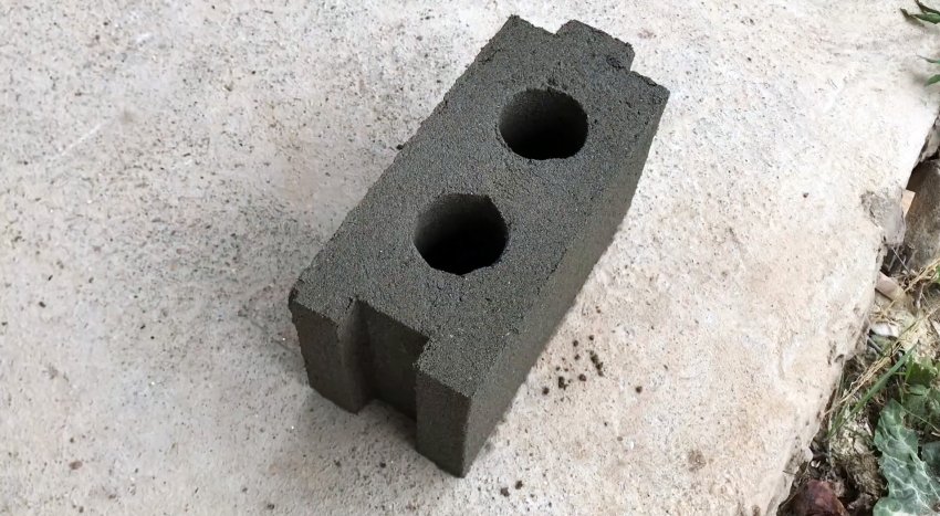 На короб сверху устанавливаем крышку и, придерживая ее пальцами, осторожно удаляем короб. На площадке остается блок с пустотами в виде двух сквозных отверстий и наружных замков.