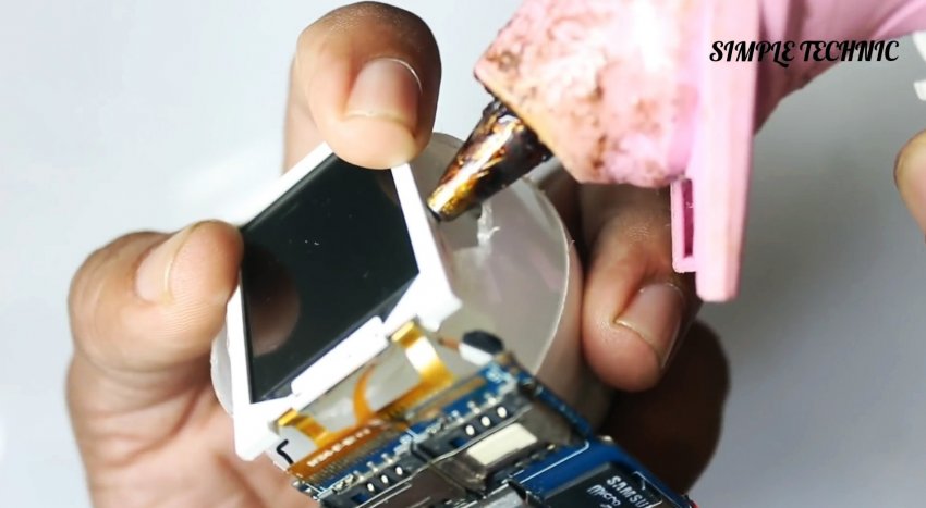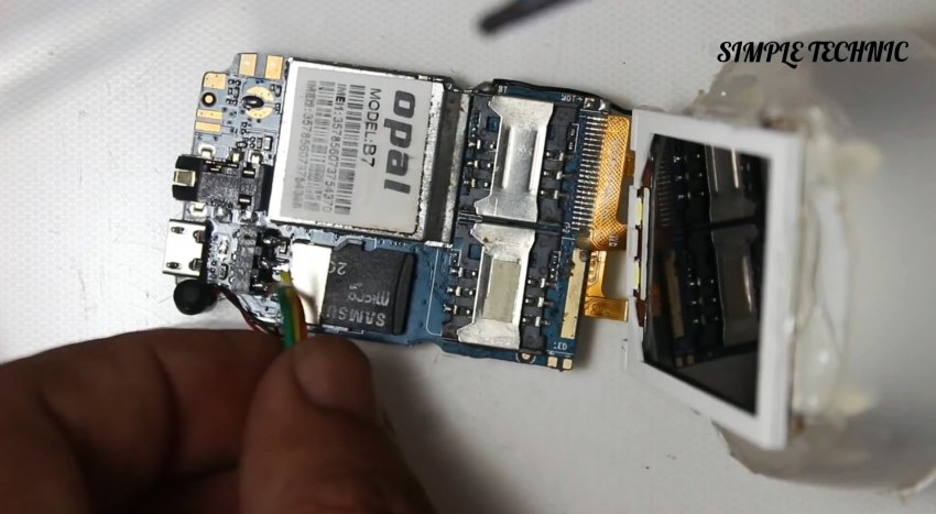 Аккуратно снимается пластиковый корпус аппарата. Удаляется динамик. С обратной стороны ЖК матрицы удаляются рассеиватель подсветки и все слои подложки. Главное – не повредить шлейф.