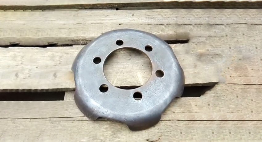 Полученные в таком виде круги не следует использовать на огороде или в саду в качестве дисков, поскольку острые уголки ласточкиных хвостов будут резать картофельные клубни. Их стачиваем, а заодно очищаем заготовки дисков от различных наслоений, ржавчины и производим их шлифовку.