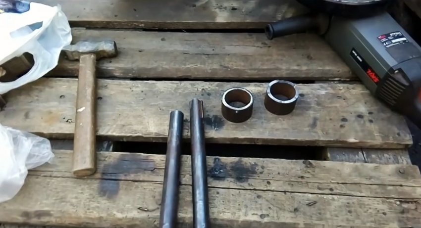 Чтобы подшипники не смещались по осям внутрь, навариваем упоры в виде колец, отрезанных от подходящей по диаметру круглой трубы.