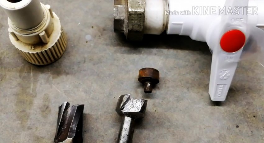 Для выравнивания фрезы при сверлении, на токарном станке вытачиваете направляющая. Она устанавливается в фрезу вместо центровочного сверла. Направляющая должна входить во впаянную трубу без зазора, чтобы не позволять развертке болтаться. Для фитинга под трубу 20 мм направляющая делается диаметром 16 мм, а для 25-й – 20 мм.