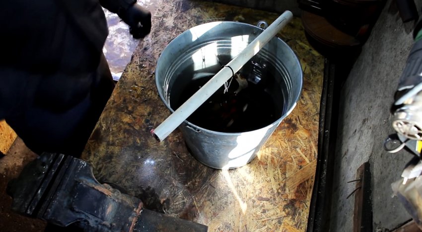 Через указанное время результаты электрохимической очистки налицо. Вся грязь из пыли, смол и жира всплывает наверх в виде коричневой пены, а частицы ржавчины осядут на поверхности ведра.