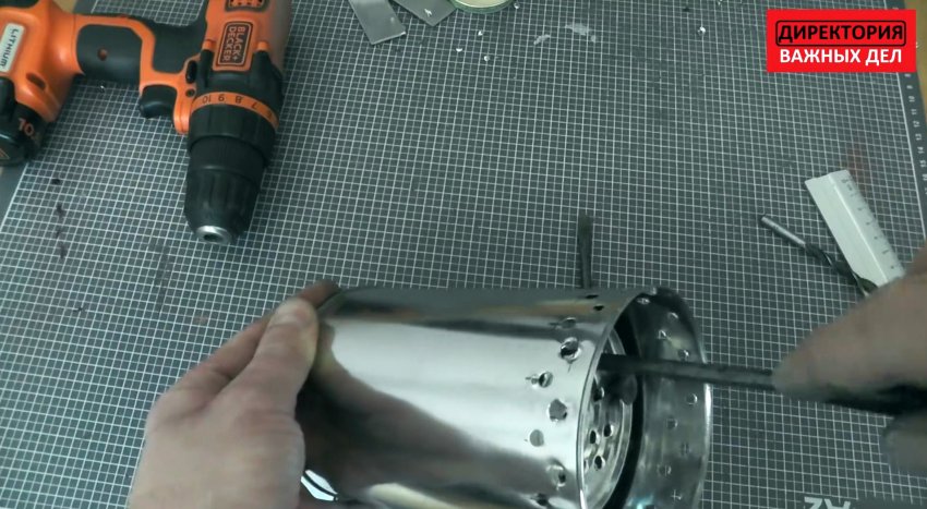 Где отверстия имеют рваные края, их лучше развальцевать чем-то круглым.