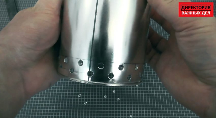 В банки от отвердителя у нижнего края также проделывается перфорация, но отверстия должны быть мелкими. Для этого удобно использовать просекатель. Лучше делать два ряда отверстий.