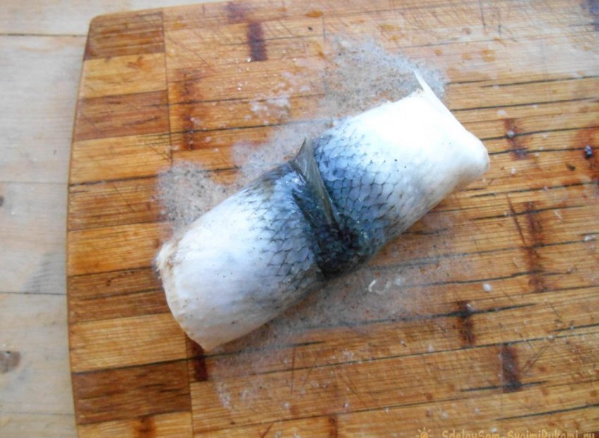 У рыбы отрежьте голову и хвост.