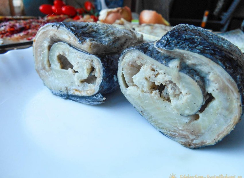 Сверните тушку в рулет. Заверните в пакет и уберите в холодильник.
