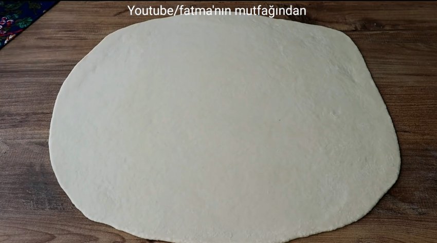 С помощью скалки раскатайте тесто в тонкий, квадратный пласт. Периодически присыпайте стол мукой, чтобы тесто не прилипало. Острым, круглым ножом срежьте лишние части теста и сделайте ровный прямоугольник.