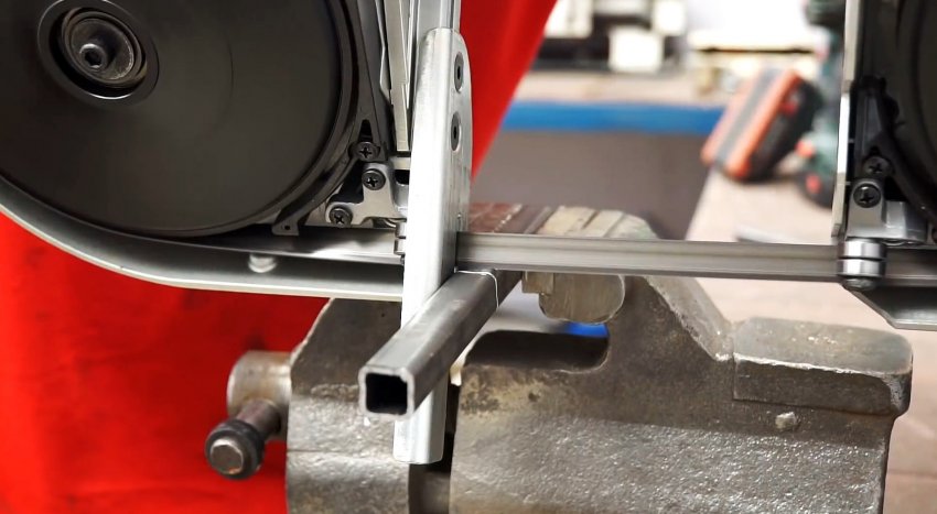 Угол пластины напротив хомута нужно выпилить, удалив прямоугольную часть шириной 50 мм. Затем требуется подготовить полосу, 50х150 мм.
