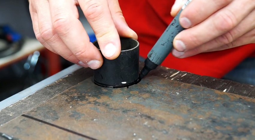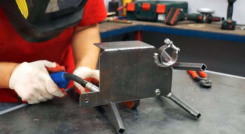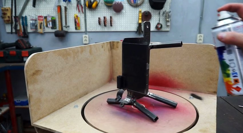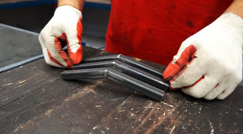 Затем из профильной трубы выгибается 3 ножки, и привариваются как на фото.