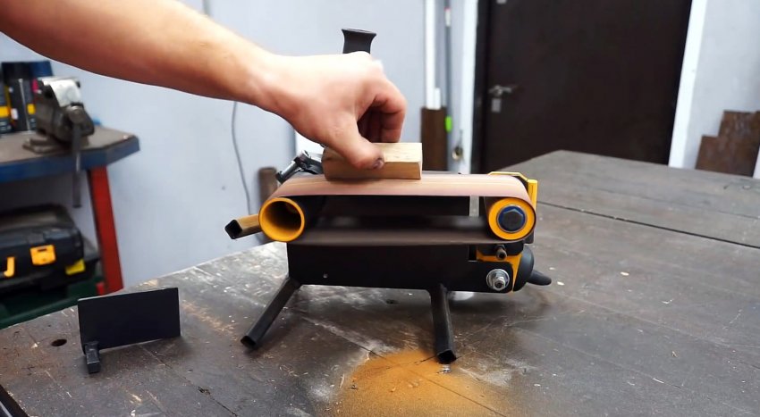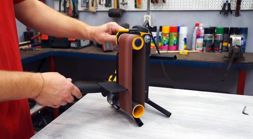 Таким образом, последний будет подпираться амортизатором. После этого можно устанавливать ленту, и использовать станок по назначению.