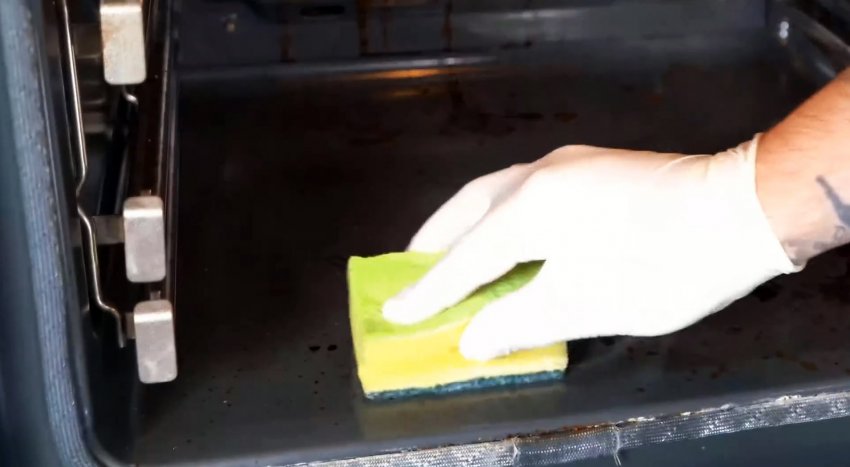 Последняя наносится губкой или кистью на внутренние грязные поверхности в духовке. В таком измазанном виде та должна постоять ночь или как минимум 8 часов с закрытой дверцей.