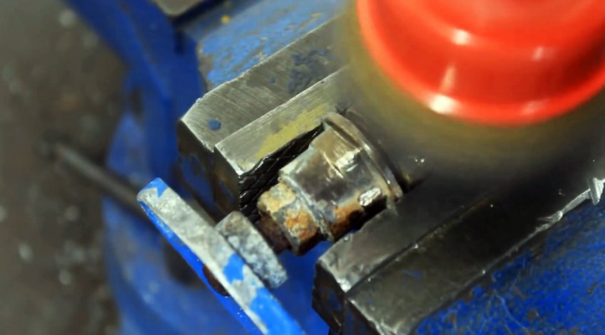В упор устанавливается шток и поджимается гайкой, срезанной из корпуса. Инструмент готов к использованию.