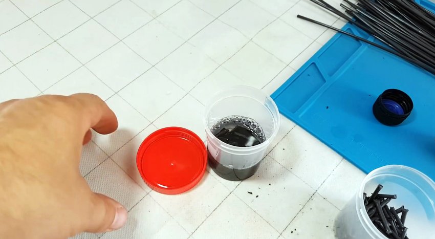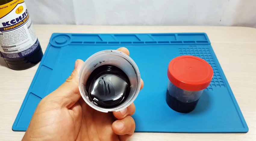 В теории просто необходимо смешать ксилол с твердой, ломанной пластмассовой и на выходе получить жидкий пластик. Но тут, как вы наверное уже догадались, не все так просто. Дело в том, что ксилол растворяет не все марки пластика, поэтому тут нужно экспериментировать.