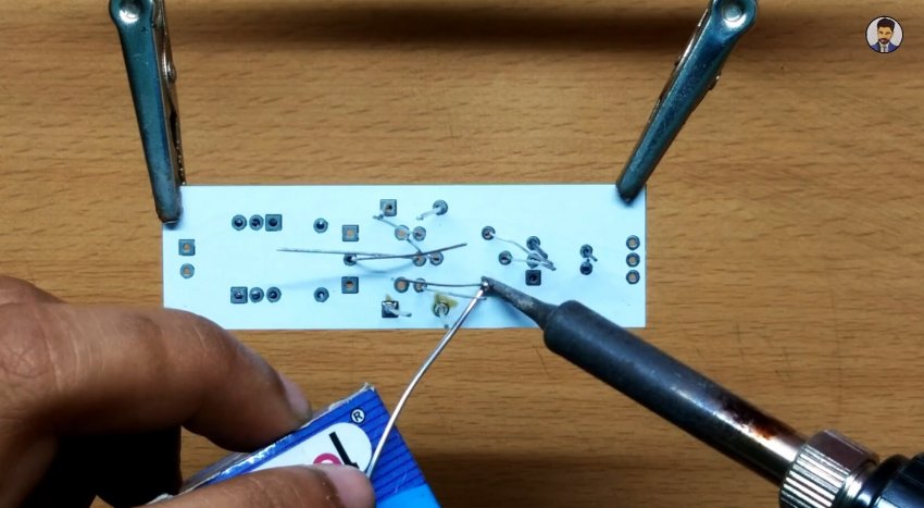 Плата была изготовлена на заказ. Вы же можете собрать схему навесным монтажем, либо на универсальной плате.