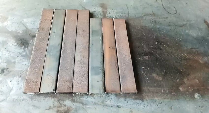 Рабочая опорная площадка приставки делается из таких же пластин, как и внизу. Только в верхней из них требуется нарезать насечки болгаркой. Это нужно для предотвращения скольжения площадки.