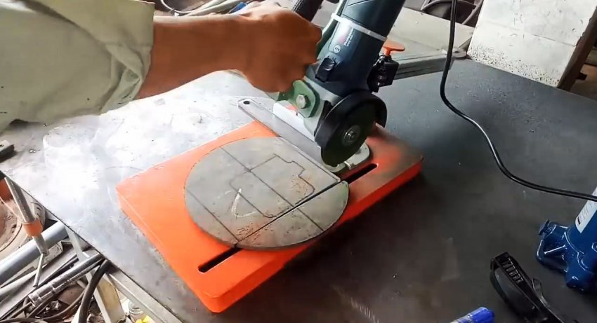 Отталкиваясь от замеров подошвы домкрата, из толстой стальной плиты вырезается основные приставки.